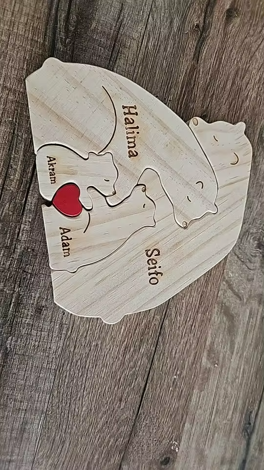 Avendo già acquistato dei puzzle personalizzati, questo si distingue per la qualità del legno e la precisione dell'incisione. Rispetto ad altri, questo seghetto offre una finitura migliore, con dettagli minuziosi che rendono ogni pezzo unico. La possibilità di personalizzare ogni orsetto con i nomi dei membri della famiglia è un grande vantaggio. Un prodotto eccellente per gli appassionati di puzzle di qualità.