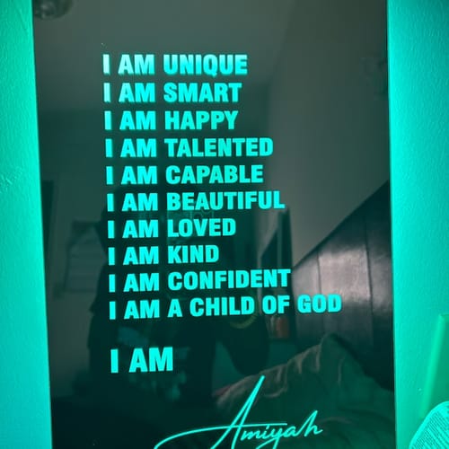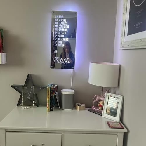 "Jeg elsker å kunne tilpasse mine egne affirmasjoner på dette speilet, det er et unikt preg i min rutine!"