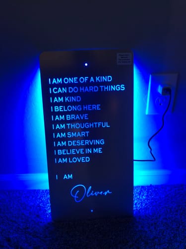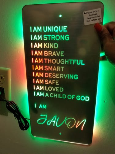 Dette affirmasjonsspeilet er fantastisk! Å kunne tilpasse min egen motiverende melding hver morgen gir meg et løft for dagen. En super idé for å forbli positiv!